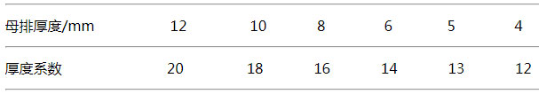 一般矩形銅排的載流量公式為:銅排載流量(40℃)=銅排寬度(mm)×厚度系數