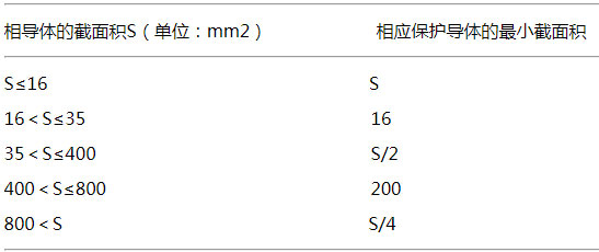 表2 保護導體的截面積(PE、PEN) 單位:mm2