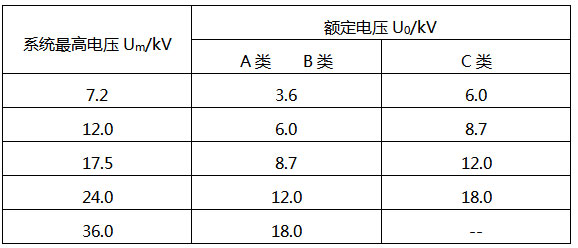 國家標準GB/T12706.2-2008將輸配電系統(tǒng)劃分為A/B/C三類,同時給出了三相系統(tǒng)電纜的推薦值