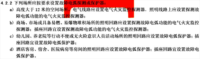簡言之,人員密集場所+有可燃物的房間需設(shè)置AFDD,設(shè)置部位為照明和插座回路。
