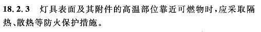 對(duì)這條規(guī)定筆者的看法與本文第1.19點(diǎn)的看法類似,如果對(duì)所有照明燈具一刀切式的要求是偏保守且不合理的,控制的重點(diǎn)應(yīng)該在“高溫部位”上,這一觀點(diǎn)在《電氣驗(yàn)收規(guī)范》中第18.2.3點(diǎn)的規(guī)定中得到印證,但如何量化“高溫”倒是值得討論。