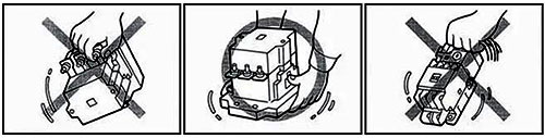 搬運電磁開關(guān)時,如果只手拎產(chǎn)品端子、消弧室、熱繼電器、電線和接線板等部位,可能會發(fā)生部件損壞或本體掉落的危險。